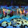 Для украшения электрокамина используюся: муляж дров белого цвета, небольшие кристаллы (прозрачные, черные) и крупные кристаллы.